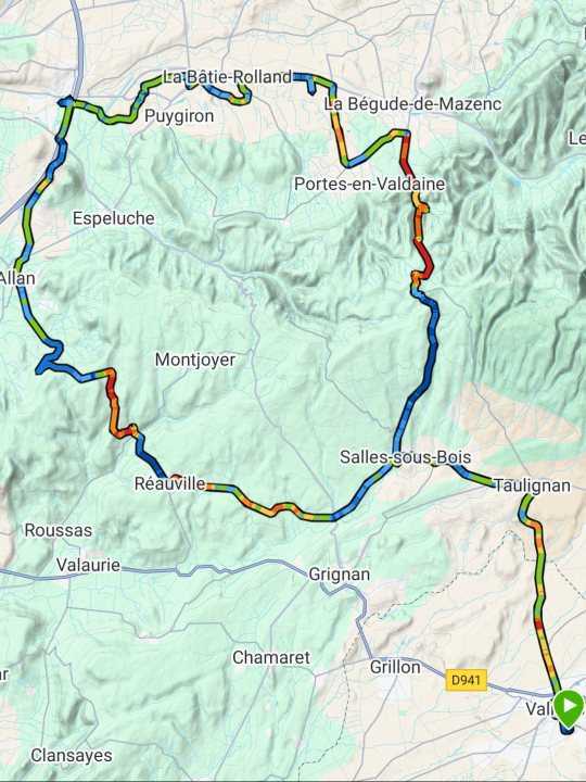 Après-midi, jour de semaine, j'ai profité d'être retraité pour aller rouler un peu avec des potes du club, retraités eux aussi. 😇 Il faisait encore un peu frais quand nous avons démarré (j'avais des manches longues), puis les 20°C ont été atteints. Nous avons fait une boucle de 80km/874m+ sans grandes difficultés, au nord-ouest de Valréas. Le mois d'octobre nous offre les premières couleurs chaudes de l'automne et des températures plus propices à l'effort que celles de juillet-août. -