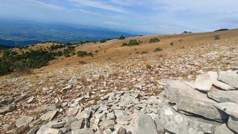 Il y avait des incendies début juin. Quand nous étions montés à l'époque, on ne voyait rien au loin. Même les oiseaux étaient perturbés. Oui, au fond, c'est le Ventoux (dans les brumes). -