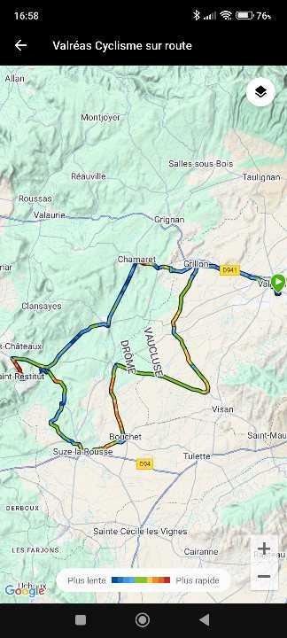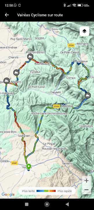 En cette fin de semaine, deux sorties avec les copains du club. Vendredi après-midi, un parcours a priori sans difficulté de 64km/503m+. A priori ; parce que quand le mistral s'en mêle, ça peut sérieusement corser l'affaire. J'aurais préféré aller me réfugier en montagne, la fin de parcours par fort vent contraire m'ayant bien fait brûler les cuissots. L'allure était soutenue (tout est relatif) et le mou de la cuisse que je suis n'était pas à la fête pendant les dernières bornes. Dimanche matin, autre sortie en groupe, sur un parcours nettement plus exigeant (90km/1322m+) qui m'a conduit sur des petites routes pleines de charme, environnées de paysages automnaux que je n'ai pas photographiés, étant "bien occupé" par les exigences de l'itinéraire. Les autochtones trouvent toujours que la région est très belle, mais plus au point de jouer aux touristes en mitraillant le paysage ! J'ai donc suivi le mouvement du mieux que je pouvais et le téléphone est resté dans la petite sacoche de cadre. Cela ne m'a pas empêché d'apprécier le spectacle offert par la nature, notamment du côté de Comps et Orcinas. À la fin, j'étais à nouveau bien cuit. Je dois progresser ! Je prévois l'une ou l'autre sortie plus calme cette semaine ; je mettrai le cardio et veillerai à rester en zone d'endurance fondamentale. Cela me fera le plus grand bien. J'espère aussi jouer un peu les mécanos, si je reçois mes nouvelles roues. -