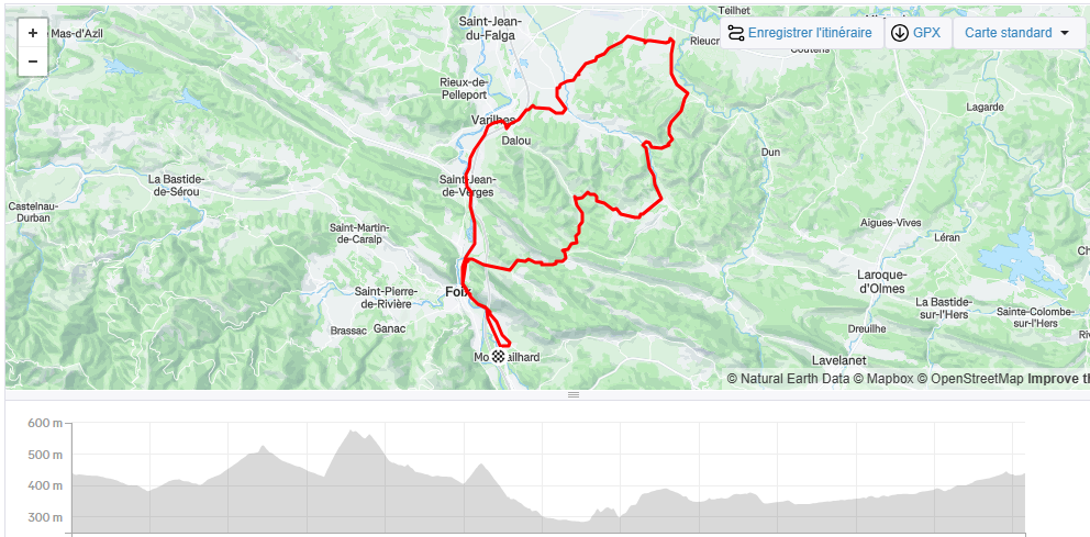 Temps radieux en Ariège et températures raisonnables (parfaites pour un veste longue fine un peu coupe-vent- Gabba pour moi). Donc sortie pause déjeuner. J'ai pu recruter deux collègues aujourd'hui et quand ils ont vu que j'avais pris le Ridley, ils ont compris qu'on allait pas trop parler ! donc sortie de 63km/632m D+ (on ne l'a pas fait exprès) avec un bonne moyenne de 28.5km/h. Les jambes sont bonnes et décidément j'adore ce Ridley. -