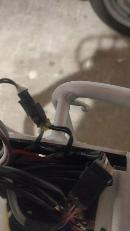 3. Bonjour, J'ai depuis peu un Giant Twist Esprit Power. Je viens de réaliser qu'une fois en place la prise de charge est masquée par la poignée de transport. voir photo Il n'est donc pas possible de charger sans démonter la batterie. J'envisage de supprimer la poignée pour dégager l'accès à la prise. Est-ce que vous pensez que ça poserait problème de charger en place ? pour la batterie ? ou peut être plus pour le contrôleur car j'imagine qu'en charge la tension est supérieure à celle de la batterie isolée ? Miniature(s) jointe(s) 0