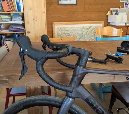 ok je vais prendre en compte ta remarque. J'y ai un peu pensé mais les mains en bas des cocottes c'est plutôt assez confort au niveau tenue. J'ai la crêve depuis samedi donc j'espère pouvoir faire un tour en vélo mercredi, si j'ai pas reçu la potence je ferai un tour en modifiant légèrement le cintre, à voir comment ça évolue mais c'est pas la grande forme et la neige est annoncé chez moi à partir de jeudi ! A noté en passant que le shop offre le montage du vélo prêt à rouler (80e le montage)... je suis un peu sceptique, les cocottes ne sont pas positionnés exactement pareil (j'ai la sensation qu'une rentre un peu plus à l'intérieur) et la pose de guidoline laisse un peu à désirer (l'arrêt du ruban n'est pas symétrique de chaque côté), je suis pas un pro de la pose mais je pense que je fais aussi bien... -