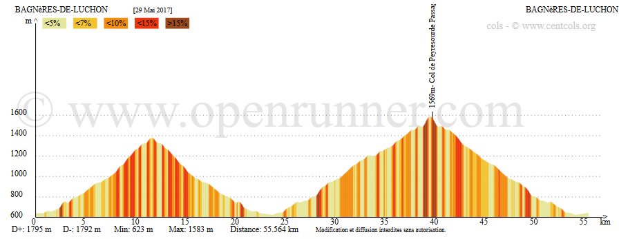 David GRIMPETTE Posté le 29 mai 2017 Posté le 29 mai 2017 Pour oublier ma défaillance de jeudi dernier sur les pentes de Goulier et du Port de Lers, retour dans les Pyrénées aujourd'hui 😛.Le temps est couvert c'est parfait je ne souffrirai pas de la chaleur. 2h de voiture m'amènent à Luchon 🆒 et c'est parti...Hospice de France: 11.7km à 6.5%. Les 4 derniers kms sont à 10,3% de moyenne.https://pbs.twimg.com/media/DA_vP1AXcAAXuZY.jpg:large (dès la bifurcation avec Superbagnères, 12%!)https://pbs.twimg.com/media/DA_vUfJWsAA377s.jpg:large (de beaux lacets, pentus)https://pbs.twimg.com/media/DA_vW-lXgAU83JU.jpg:large (idem)https://pbs.twimg.com/media/DA_vZ8cXgAADOit.jpg:largehttps://pbs.twimg.com/media/DA_vdI9WAAEmWTJ.jpg:largeLes sensations sont correctes, la température de 17°C au sommet y est pour quelque chose.Ensuite descente ultra rapide (max 85km/h) pour retourner à Luchon et gravir le second col de cette petite sortie.Col de Peyresourde via route alternative / Portet de Luchon:Pour rendre cette montée encore plus irrégulière, rien de tel que de bifurquer à Garin et passer par Portet de Luchon pour rejoindre le sommet. C'est un poil plus long, et beaucoup plus irrégulier.https://pbs.twimg.com/media/DA_vheTXYAAWoy1.jpg:large (22°C ici)https://pbs.twimg.com/media/DA_vko1XUAAFHzM.jpg:large (un passage >11%)https://pbs.twimg.com/media/DA_vnm-XoAAJKZ7.jpg:large (tranquille, seul au monde)https://pbs.twimg.com/media/DA_vqymXkAAsons.jpg:largehttps://pbs.twimg.com/media/DA_vt6XXUAAtYRv.jpg:large (le final en lacets)https://pbs.twimg.com/media/DA_vwfmXsAAlGlT.jpg:largehttps://pbs.twimg.com/media/DA_vy55WAAAbM4k.jpg:large (belle pente sur la fin là aussi)https://pbs.twimg.com/media/DA_v1t_XkAAwzs5.jpg:large (le sommet)Des travaux d'enrobé sont en cours au sommet, probablement pour le Tour de France 🆒.Retour à Luchon avec 2h50 de selle et 1686m de D+.Profil: https://pbs.twimg.com/media/DA_vCmXW0AAKjp1.jpg:largeEn consultant mon portable de retour à la voiture j'apprends une triste nouvelle qui me fera cogiter tout le retour en voiture. Une grand-tante s'en est allée...