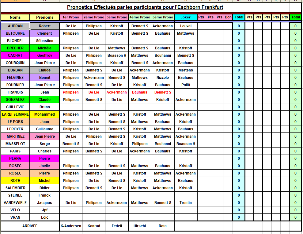 Pierre ROSEC Posté le 1 mai 2023 Posté le 1 mai 2023 Le tableau des pronostics pour l'information et le classement Michel Crepel en rappel. A bientôt pour le Giro. Bonne semaine à toutes et tous.