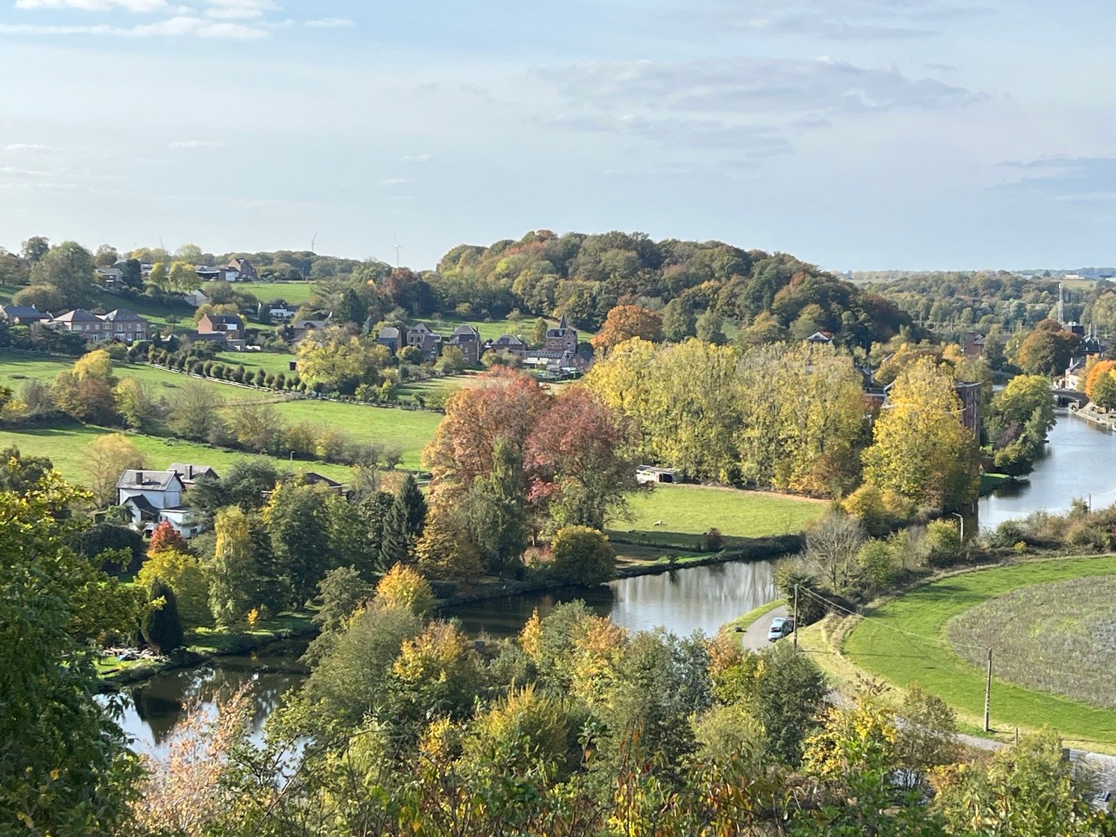 Jacques VANDEWIELE Posté il y a 12 heures Posté il y a 12 heures (modifié) Cet après-midi , profitant d'une météo automnale agréable : 65,81 kms et 672m de D+. Temps nuageux mais avec des éclaircies. T° moyenne de l'ordre de 15°C mais le vent modéré d' fait descendre le ressenti à 11°C. Ma sortie m'a emmenée sur les hauteurs de Thuin d'où il y a une très belle vue sur l' Abbaye de Lobbes et les méandres de la Sambre . L'abbaye Saint-Pierre de Lobbes est un établissement monastique qui a été fondé en 654 et dissous en 1796. Après l'incendie de 1794 par les troupes révolutionnaires françaises subsistent :la brasserie, une aile de l'ancienne ferme abbatiale, une porte de l'enceinte et la collégiale Saint Ursmer. La collégiale ainsi que la porte de l'enceinte sont classées au patrimoine immobilier de la Wallonie. Modifié il y a 12 heures par Jacques VANDEWIELE 8