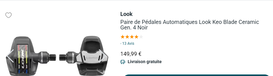 Gérard CRESPO Posté il y a 6 heures Posté il y a 6 heures il y a 11 minutes, Serge NAVETAT a dit : Mon voisin qui a eu le problème avec la pédale Wahoo qui s'est cassée a fait mettre des pédales Look 159€. c'est trop cher! Ça existe des Look à 159€ ? Il y a encore plus cher mais à quoi bon?