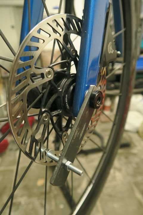 Thierry GEUMEZ Posté il y a 6 heures Posté il y a 6 heures (modifié) Malgré tout le soin que j'ai apporté au réglage de mes étriers, j'entends régulièrement un léger frottement en danseuse. Le jeu total entre les plaquettes et les disques étant de 0,4 mm (données Campa), donc 0,2 mm de chaque côté si le centrage est parfait, ça laisse peu de marge de manoeuvre et le moindre voile du disque ou mauvais centrage de l'étrier ne pardonne pas. J'ai donc décidé de me confectionner un petit outillage pour faciliter le dévoilage des disques. Je n'ai pas encore trouvé de solution parfaite pour le centrage des étriers parce qu'ils ont tendance à glisser légèrement lors du serrage des vis. Modifié il y a 6 heures par Thierry GEUMEZ