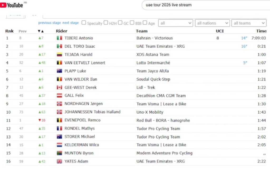 Michel ROTH Posté il y a 4 heures Auteur Posté il y a 4 heures (modifié) Tibéri nouveau leader. Del Toro deuxième à 21 s. C'est un troisième larron qui tire les marrons du feu. Belle ascension de Van Eetveld, 4ème au général. Modifié il y a 4 heures par Michel ROTH